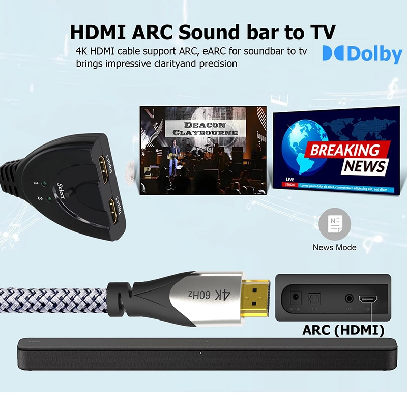 Support 4k@60Hz, 3D, 1080P, 4K x 2K@30hz resolution and TrueHD 7.1 provide theater-level effect at home, HDCP v2.2 compatible, 36 bit/px HDR color depth. With this HDMI switch you can enjoy the most luxurious video and audio.