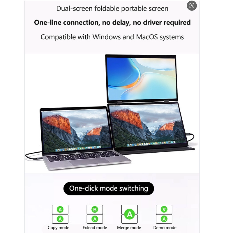 • 【Driver-Free Setup: Plug & Play! Multi-Mode Freedom】 No drivers needed – truly plug and play! Seamlessly compatible with macOS & Windows. Instantly switch between three modes: Extend (dual-screen workflow), Duplicate (mirrored display), or Combine (ultra-wide canvas). Transition effortlessly between work and play.