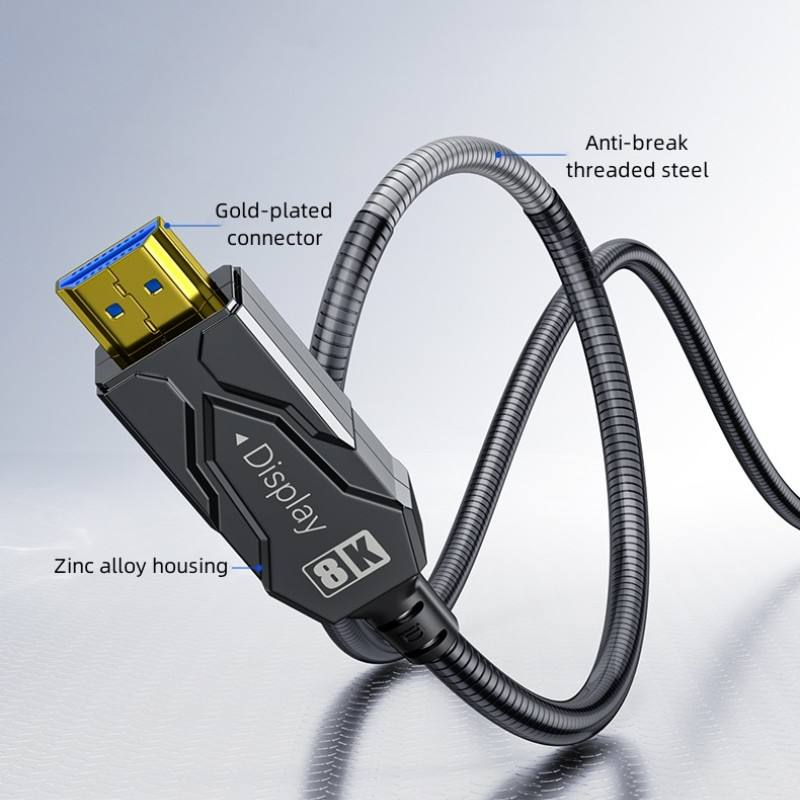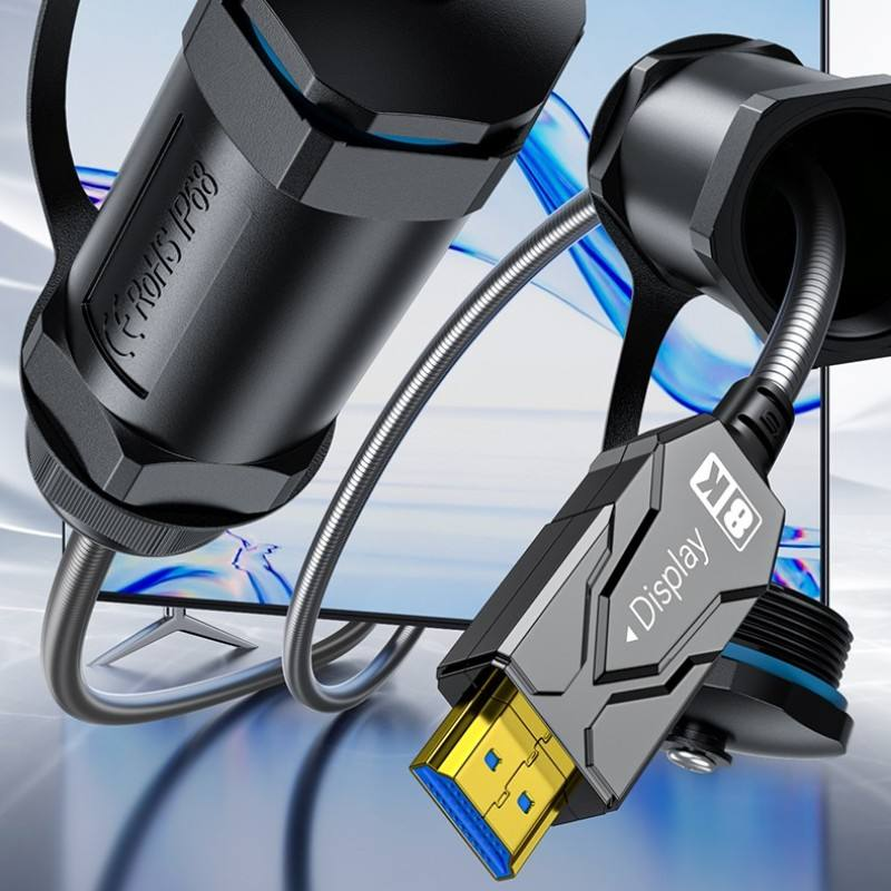 Fiber Optic HDMI Cable 2.1 4k 120Hz 8K 60Hz 48Gbps High Speed HDR eARC HDCP 2.2 2.3 3D Outdoor Armored Long HDMI Cord Waterproof IP68 for Laptop Monitor TV Xbox PS4/PS5, Unidirectional